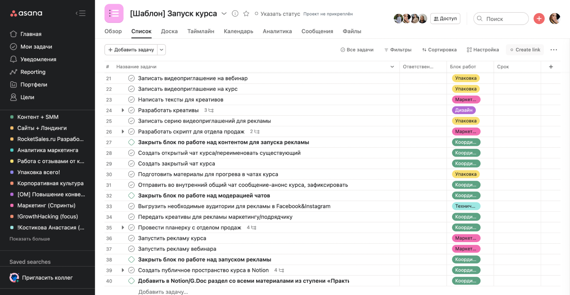 Вы не удивитесь, но о том, как мы используем Asana в RocketSales, мы записали обучающий курс. Если у вас есть желание больше узнать о платформе и выстроить собственную систему проектного управления на базе Asana, вам стоит побывать на странице курса.